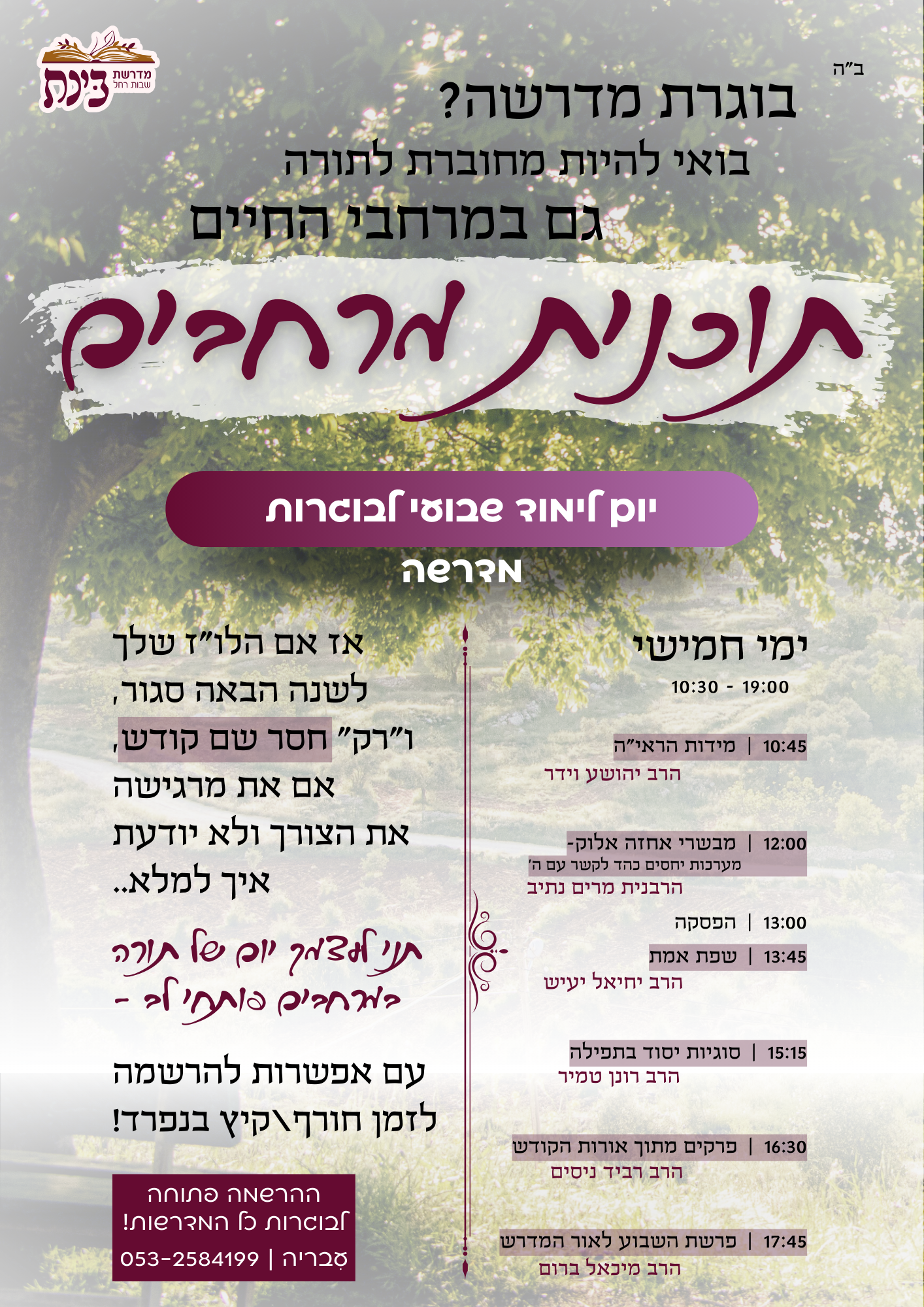 התכנית מיועדת לבוגרות מדרשות, נשמח להפצת הפרסום אצל חברותיכן, בקבוצות השונות.